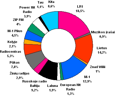 VIDUTINĖ RADIJO AUDITORIJOS STRUKTŪRA PAGAL KLAUSYTĄ LAIKĄ % (SHARE) LIETUVOJE