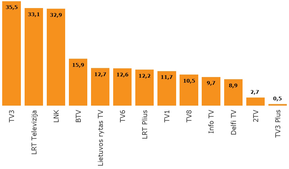 | 1. | LRTV ŽINIOS 16 VAL | ŽINIOS | 2,2 |
